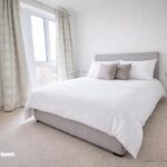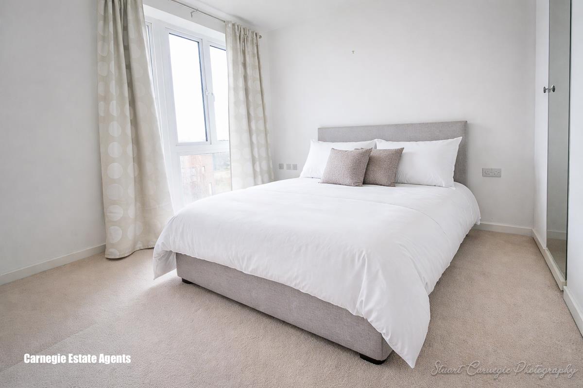 There are two well-proportioned bedrooms, including a particularly spacious principal bedroom, both offering excellent versatility for homeowners, guests, or home working. The accommodation is completed by a modern family bathroom with a clean, neutral finish.